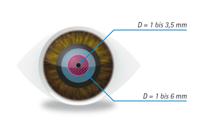 • Kleinster messbarer Pupillendurchmesser: 2 mm